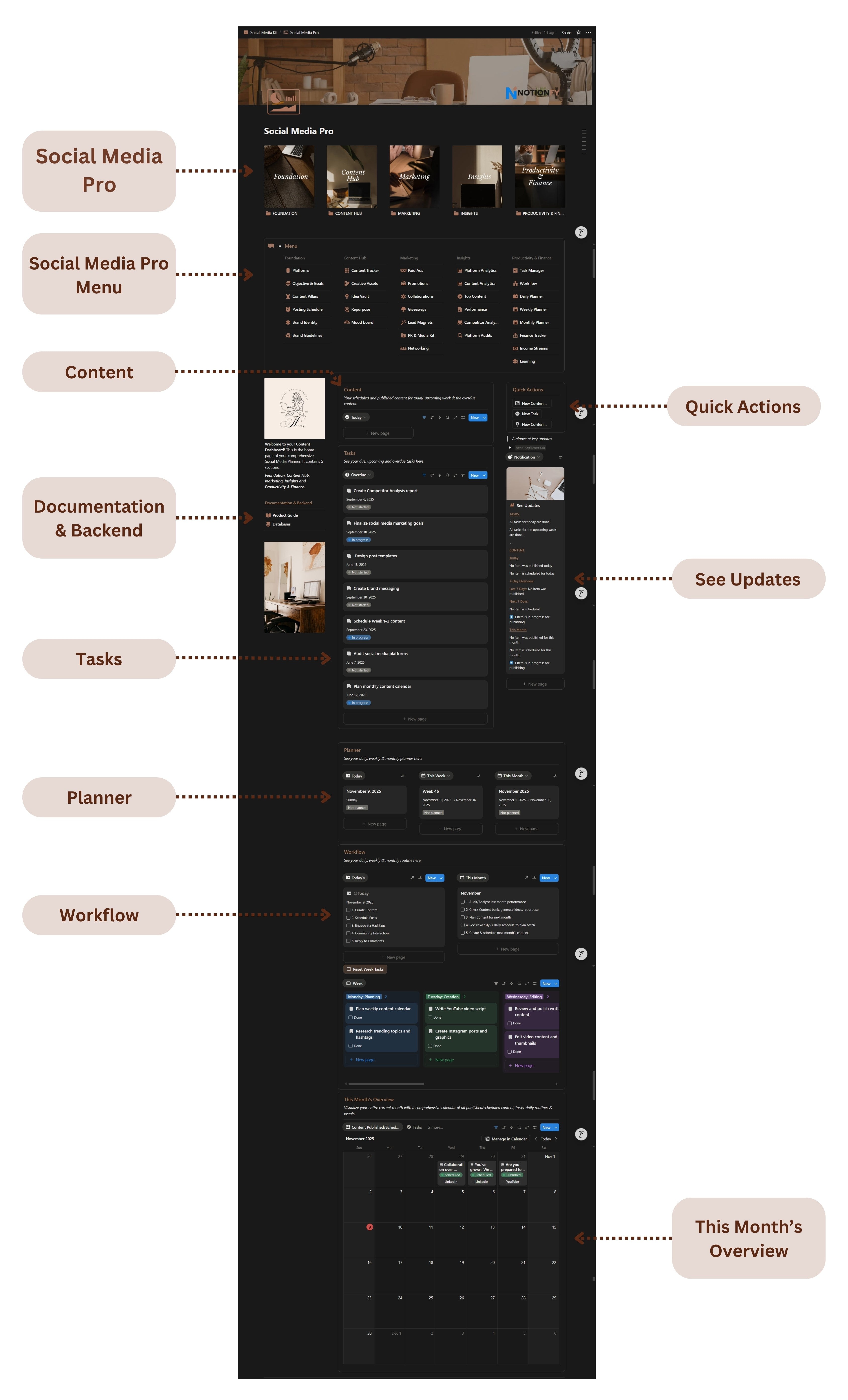 It’s your all-in-one Notion system to organize, plan & repurpose ideas, videos, scripts, and posts — for every platform, all in one workspace.